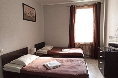 Здание гостиницы разместилось на улице Ленина. В распоряжении гостей 7 номеров Double и Twin с удобствами. В каждом номере предусмотрена индивидуальный санузел с душем, есть ЖК-телевизор, фен, доступна сеть wi-fi.